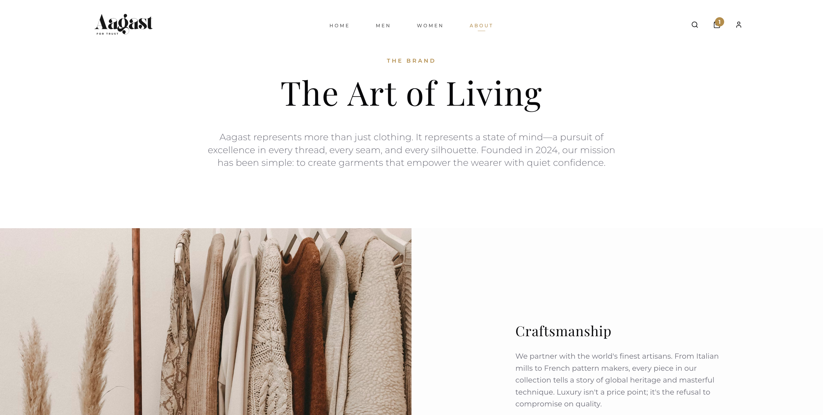 Every item in the Aagast collection is curated for its superior fabric and build. The website reflects this high standard through crisp, detailed imagery and a sophisticated layout.