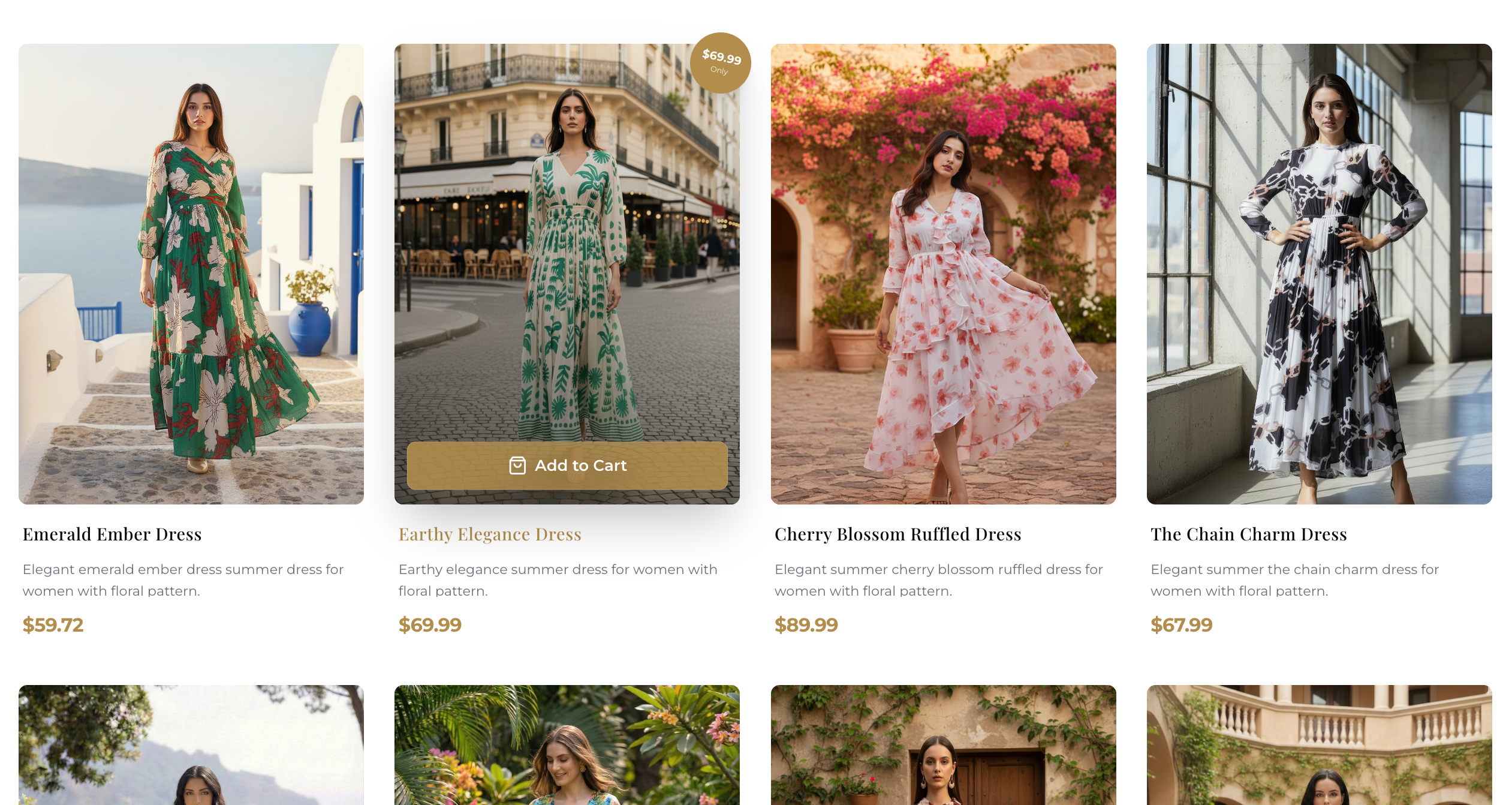 A clean, high-end grid layout showcasing luxury items with hover effects and quick-view options.